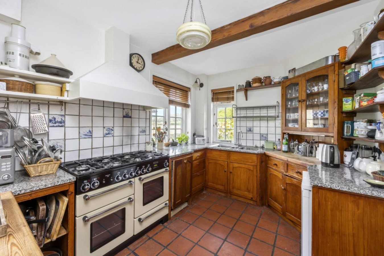 The heart of the home, the small but well equipped kitchen overlooks the walled garden and is fully equipped with modern conveniences — including an induction hob, oven, dishwasher, microwave, kettle, toaster, and ample cookware and tableware. Whether you’re preparing a simple breakfast or a celebratory feast with local produce, everything you need is close to hand.